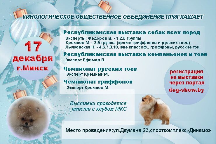 Обращаем ваше внимание, что регистрация на выставки производится через портал dog-show.by